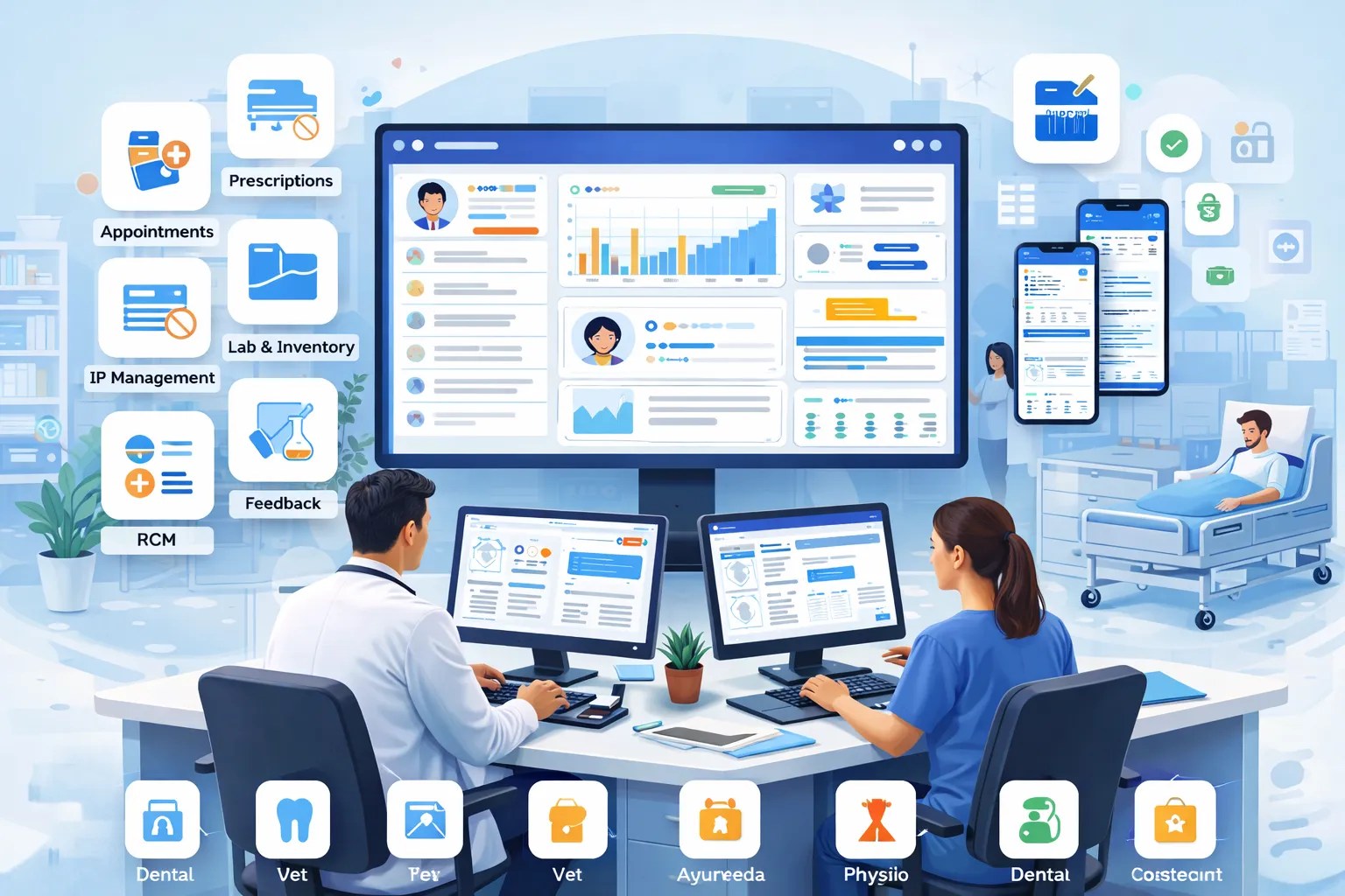 Yes. Dedicated modules exist for dental, ayurveda, physio, vet, and more.